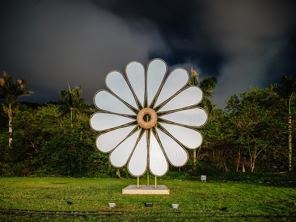 「沐光泉」為2025台東光祭主題,選址於知本溫泉——水與光交織的土地。水在此以液、氣、固三態流轉,光穿梭枝葉與霧氣之間,兩者如同時間的顯像,引領人們感知自然與生命的連續性。本展分為三展區:「源湧之境」聚焦水的療癒起點、「光現之境」探索感知邊界、「永續之泉」省思人與自然共生。展覽透過聲景、光影與地景裝置,構築曖昧邊界的感知場域,讓觀者在自然時間中覺醒、迷失並融合。藉由水與光的藝術轉化,「沐光泉」喚起對土地、時間與自身存在的深層對話。