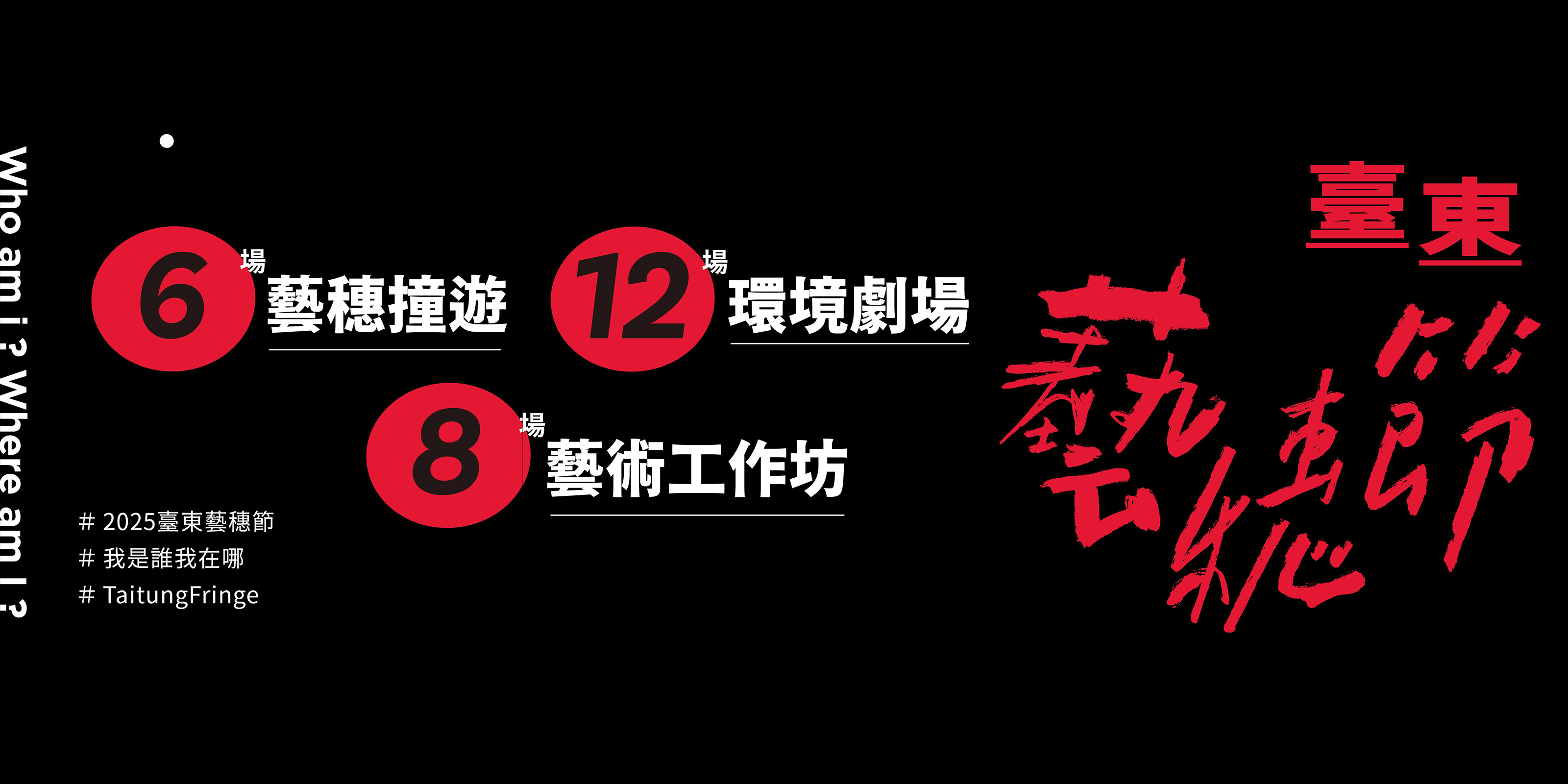 臺東藝穗節 ➟ ❨ 我是誰?我在哪?❩ 在臺東,與自己相處 相遇後必須學會如何相處 ,❮ 啊,這「也」是我,我在臺東.ᐟ.ᐟ ❯ 這句話肯定了我們是千變萬化、是陰晴不定的, 有著多種面貌、無限種可能性的存在 亦如同臺東的山與海,每分每秒都與眾不同一般 你,也不只有一種樣貌 臺東藝穗節本次共推出八場藝術工作坊,邀請你一起與自己相處 期望透過工作坊講者的引導,你能再更清楚的說出:「我是 _,我在 _。」 ❨ ❻場藝穗撞遊 ╳ ❽場藝術工作坊 ╳ ❶❷場環境劇場❩ 【體驗工作坊】 搶先一覽表 ➟ 丨市區丨 📌 曾智偉《野梅close up》 🫂 愛滋X療癒X工作坊 學會用藝術擁抱愛滋傷痛,創造專屬我們的安全王國⋯⋯ 醉醉感染者限定場 ① 10 / 16(四)𝟏𝟖:𝟎𝟎 -𝟐𝟐:𝟎𝟎 醺醺共同擁抱場 ① 10 / 17(五)𝟏𝟖:𝟎𝟎 -𝟐𝟐:𝟎𝟎 醉醉感染者限定場 ② 10 / 18(六)𝟏𝟖:𝟎𝟎 -𝟐𝟐:𝟎𝟎 醺醺共同擁抱場 ② 10 / 19(日)𝟏𝟖:𝟎𝟎 -𝟐𝟐:𝟎𝟎 📌夏威夷火山之花舞蹈學苑 Hula Halau O Lehua 《 2025 懷念的夏威夷》一日 Hula 草裙舞工作坊 夏威夷 X Hula草裙舞X南島文化 🌺 在臺東山海間,用Hula喚醒身體節奏,跳給山看、唱給風聽⋯⋯ 𝟏𝟎月𝟏𝟖日(六)𝟗:𝟑𝟎-𝟏𝟔:𝟎𝟎 📌 斜槓青年創作體/朱怡文、周韋廷 《從面具的眼睛看出去》大眾面具體驗工作坊 面具表演X無語言X肢體肢體 🎭 課程從簡單的劇場遊戲和暖身活動開始,慢慢帶你進入面具的世界⋯⋯ 𝟏𝟎月𝟑𝟏日(五)𝟏𝟖:𝟎𝟎–𝟐𝟏:𝟎𝟎 𝟏𝟏月𝟏日(六)𝟎𝟗:𝟑𝟎–𝟏𝟐:𝟑𝟎 📌魔梯形體劇場 《打得跟真的一樣工作坊》🥊 帥氣假打鬥X玩耍X紓壓釋放 拋開煩惱,來場打鬥,痛快釋放負能量! 𝟏𝟏月𝟏日(六)𝟏𝟑:𝟑𝟎 𝟏𝟏月𝟐日(日)𝟗:𝟑𝟎 📌 蔡旻妤《水影留痕:記憶的動態風景》 影像敘事表達X即興肢體創作X藝術共創 將回憶化為身體風景,用肢體與影像共創屬於你的故事⋯⋯ 𝟏𝟏月𝟕日(五)𝟏𝟖:𝟑𝟎-𝟐𝟏:𝟑𝟎 𝟏𝟏月𝟖日(六)𝟏𝟖:𝟑𝟎-𝟐𝟏:𝟑𝟎 𝟏𝟏月𝟗日(日)𝟏𝟖:𝟑𝟎-𝟐𝟏:𝟑𝟎 📌南步の女 lâm-pōo no lú 《蜜青蛙》Me × Frog 🧙🏻♀️🐸 情慾探索X女性X五感體驗X是展演也是工作坊 童話裡的女巫與青蛙,將帶你用五感探索情慾的甜蜜與禁忌⋯⋯ 𝟏𝟏月𝟏𝟓日(六)𝟏𝟒:𝟎𝟎、𝟏𝟕:𝟎𝟎、𝟐𝟎:𝟎𝟎 𝟏𝟏月𝟏𝟔日(日)𝟏𝟒:𝟎𝟎、𝟏𝟕:𝟎𝟎 丨關山丨 📌惣在生活 高寧 & 寫作引導者 邱奕嘉 《⼊⼭詩|與山共演的邀請信》 #與山重逢 #將文字採集風乾 #書寫給山的一句話 進山不讀詩,而是用身體和山共創一首詩⋯⋯ 𝟏𝟏月𝟐𝟐日(六)𝟏𝟑:𝟎𝟎 📌惣在生活 高寧 《吃⼀口⼭|跨越時間的品嚐》 #你的腸胃要跟你說什麼 #物產與時間的堆疊 #嚐一桌四季風土餐桌 山的味道不只封存在食物裡,更將成為你身體的一部分⋯⋯ 𝟏𝟏月𝟐𝟑日(日)𝟏𝟑:𝟎𝟎