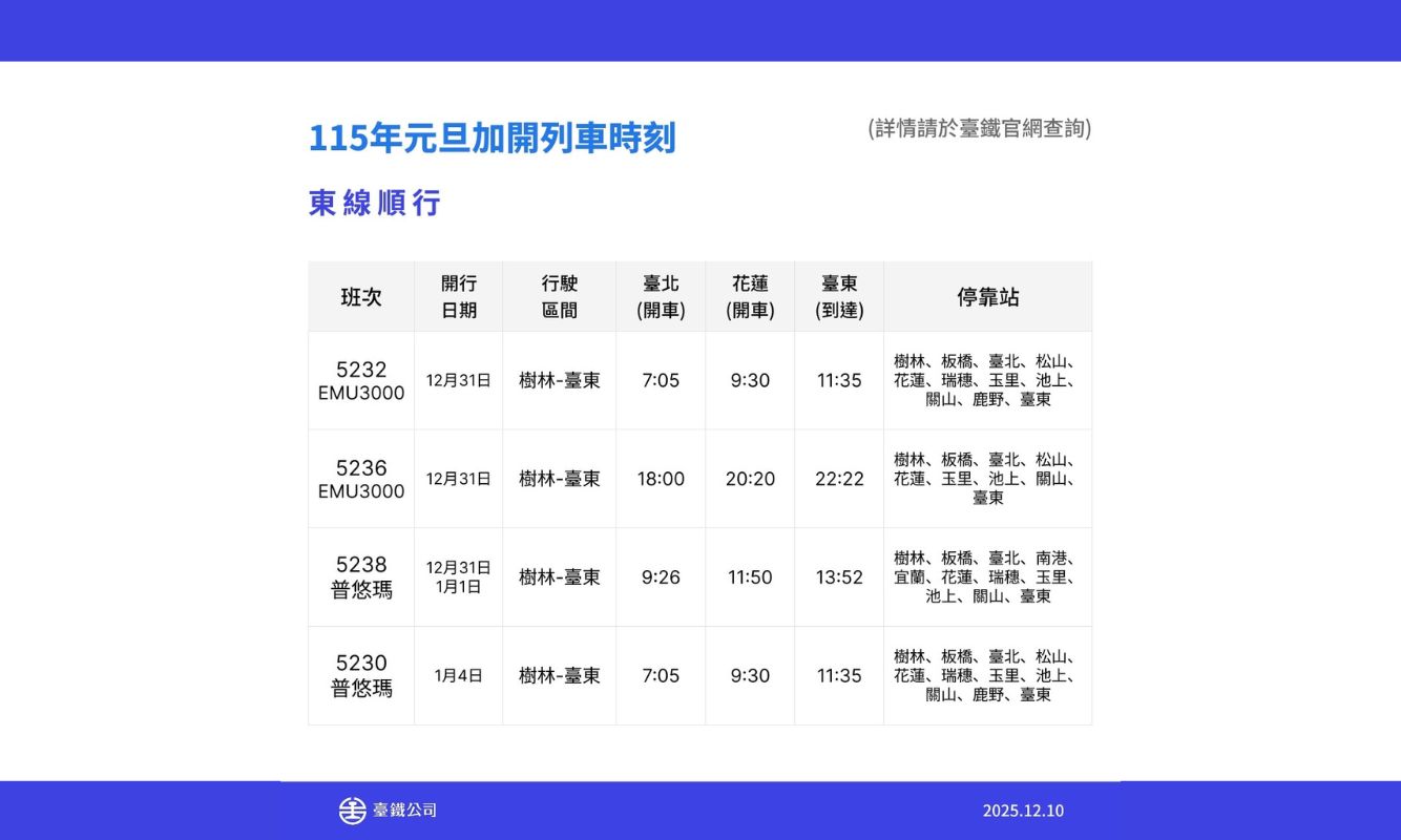 。゚・ ─-ˋˏ 東漂去旅行:東!帶我走 ˎˊ-─ 。゚・ ✦ 活動日期|𝟭𝟭𝟰年𝟭𝟮月𝟯𝟭日-𝟭𝟭𝟱年𝟭月𝟭日 ✦ 活動地點|臺東市國際地標 免費入場 ✦ 活動時間✦ ・美食市集:13:00起 ~活動結束 ・日間演出:15:00 ~ 17:30 ・夜間演出:18:00 ~ 01:00 ✦ 直播平台|(無間斷・無廣告直播) ・饒慶鈴縣長 FB (𝟭𝟱:𝟬𝟬起) ・臺東縣政府 YouTube (𝟭𝟱:𝟬𝟬起) ・LINE 旅遊 (𝟭𝟴:𝟬𝟬起) ⊹ 禁止夜排,活動前搖滾區範圍將管制。 ⊹活動當天會場內為行人徒步區,🚳 禁止汽機車、腳踏車、電動車、滑板車行駛,以免發生危險。