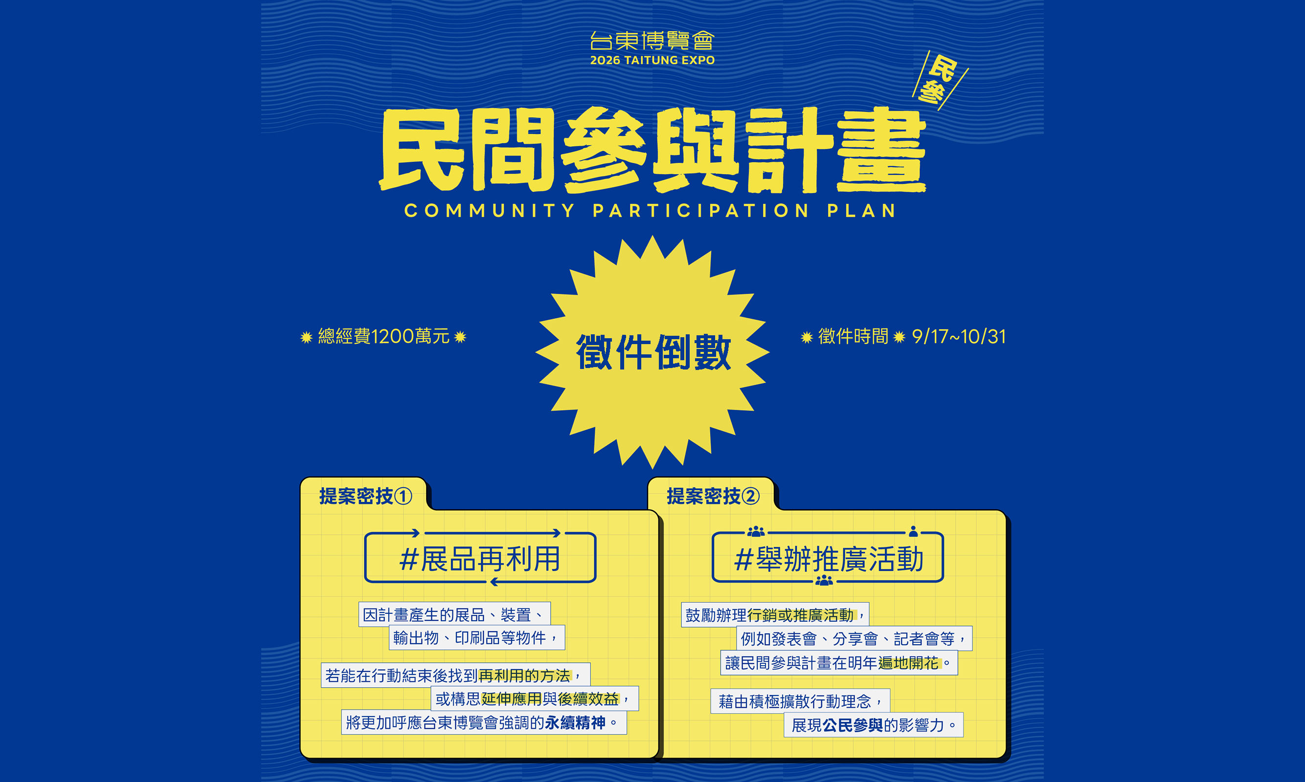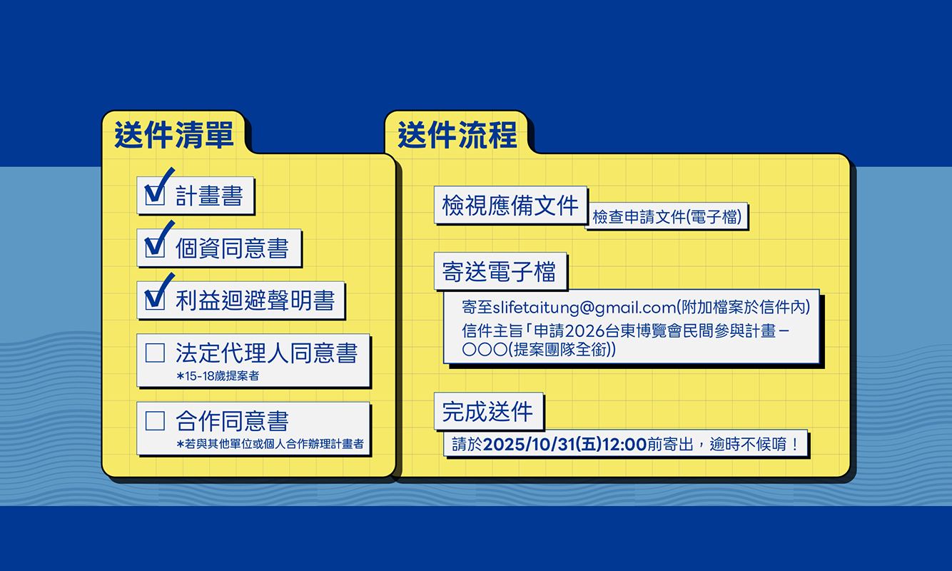信件主旨:「申請2026台東博覽會民間參與計畫-○○○(提案團隊全銜)」