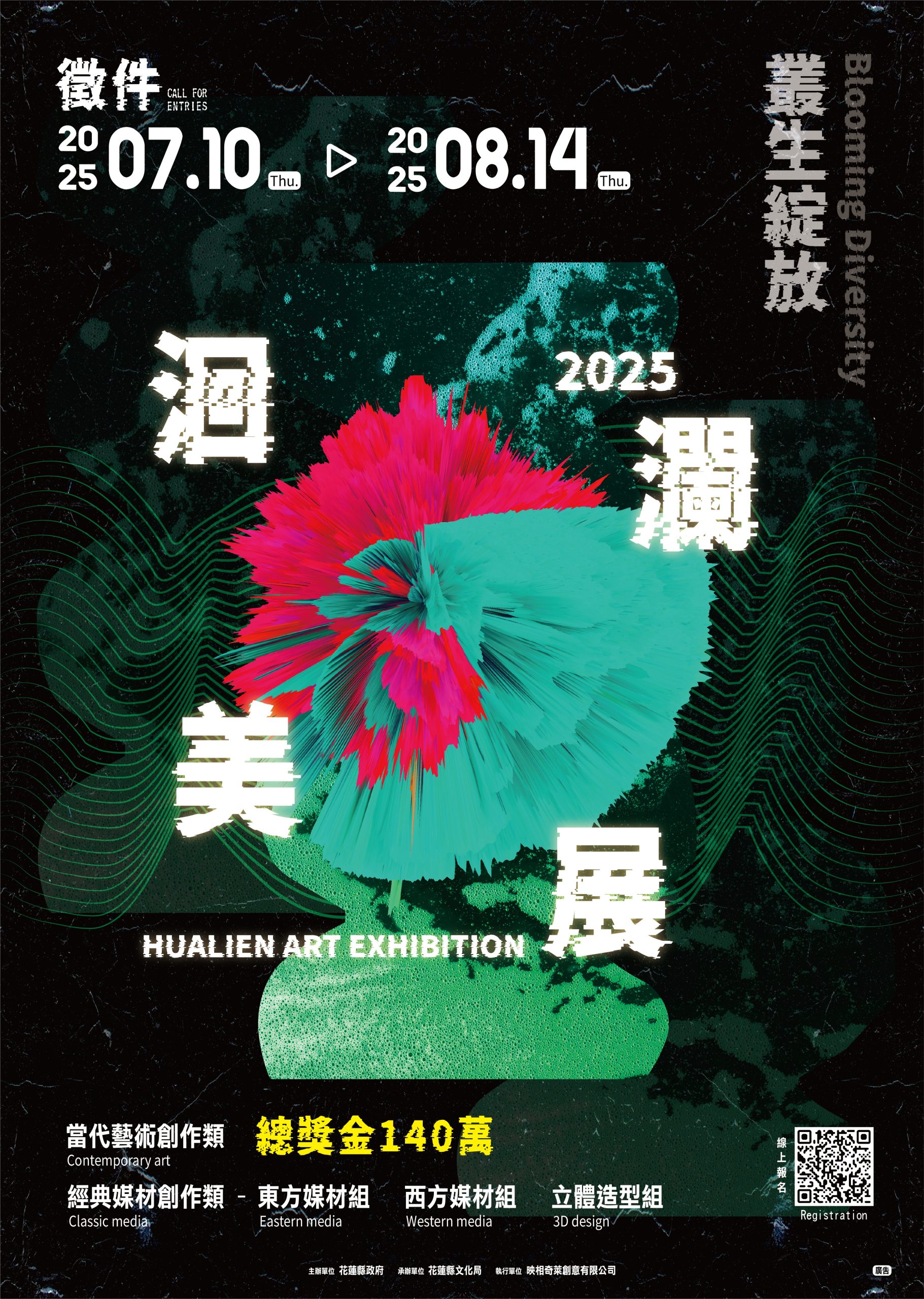 一、 「2025洄瀾美展」採國際徵件,徵件作品分為當代藝術創作類與經典媒材創作類-東方媒材組、西方媒材組及立體造型組,共4類組,總獎金新臺幣140萬元整。
