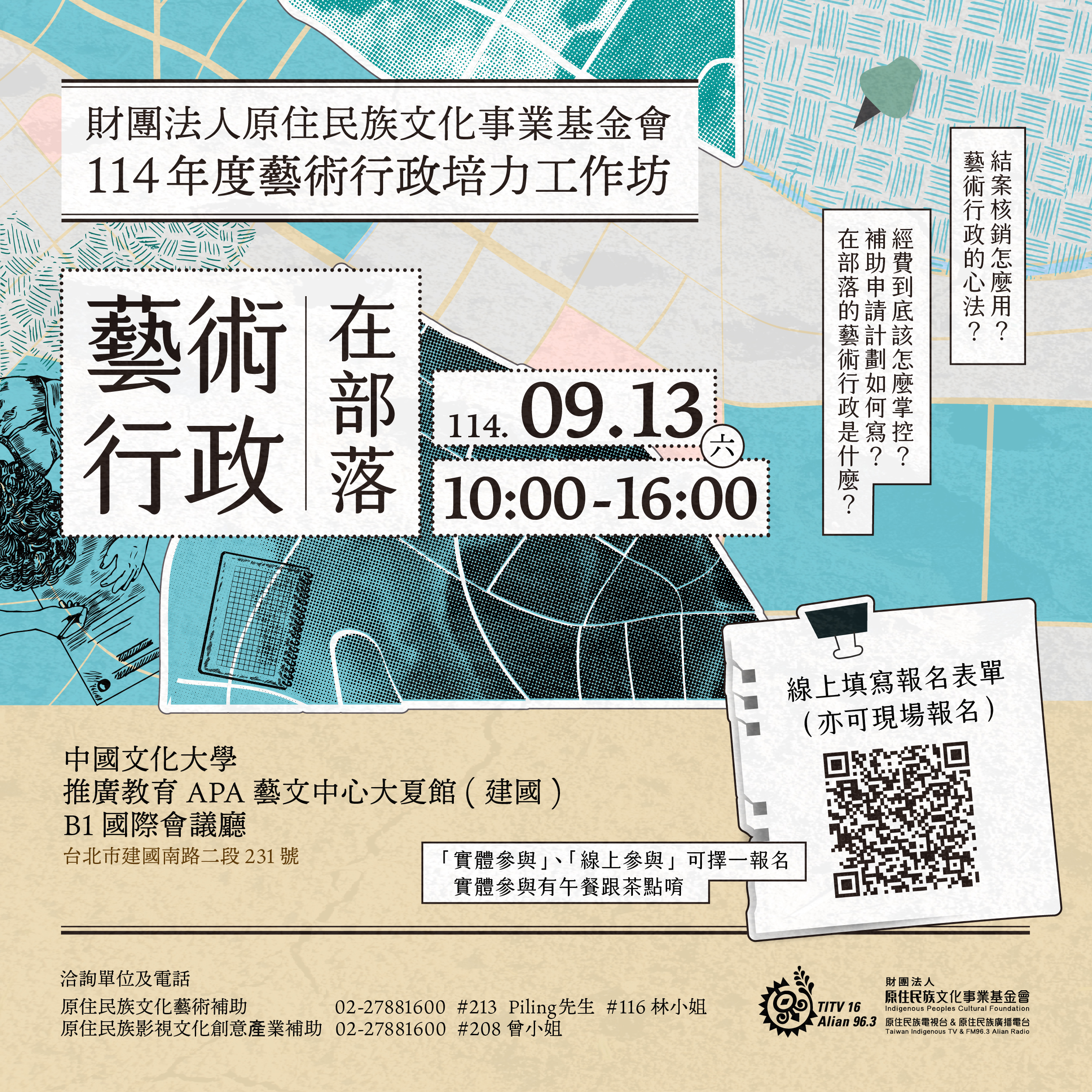 一、「114年度藝術行政培力工作坊:藝術行政在部落」以一年一場次的節奏,希冀匯聚藝術行政量能,以專題講座及原住民族文化事業基金會補助內容說明等,交流部落以及地方執行相關計劃的現況,並搭起平台讓資源、人力、資訊的部分能夠有充分的認識與交流。